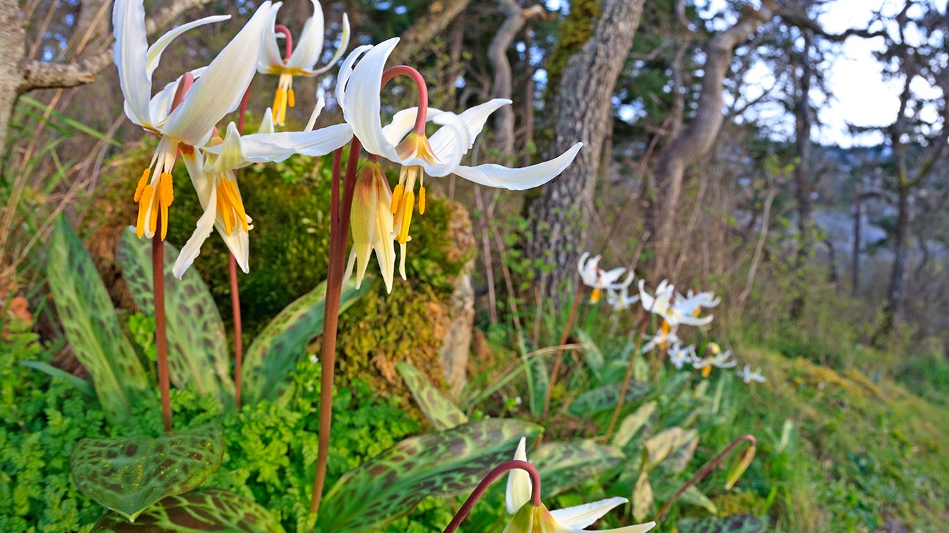 White Fawn lilies, (erythronium oregonum), Pipers Lagoon Park, Nanaimo, B.C. (© Keith Douglas/Getty Images)(Bing Canada)