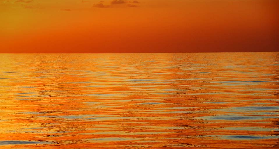 橙色晚霞下平静的海面 (© Toby Adamson/Axiom)(Bing China)
