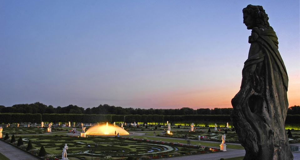 Blick von der Großen Kaskade auf das illuminierte Parterre des Großen Gartens in Hannover (© T Hennecke/Blickwinkel/Age Fotostock) © (Bing Germany)