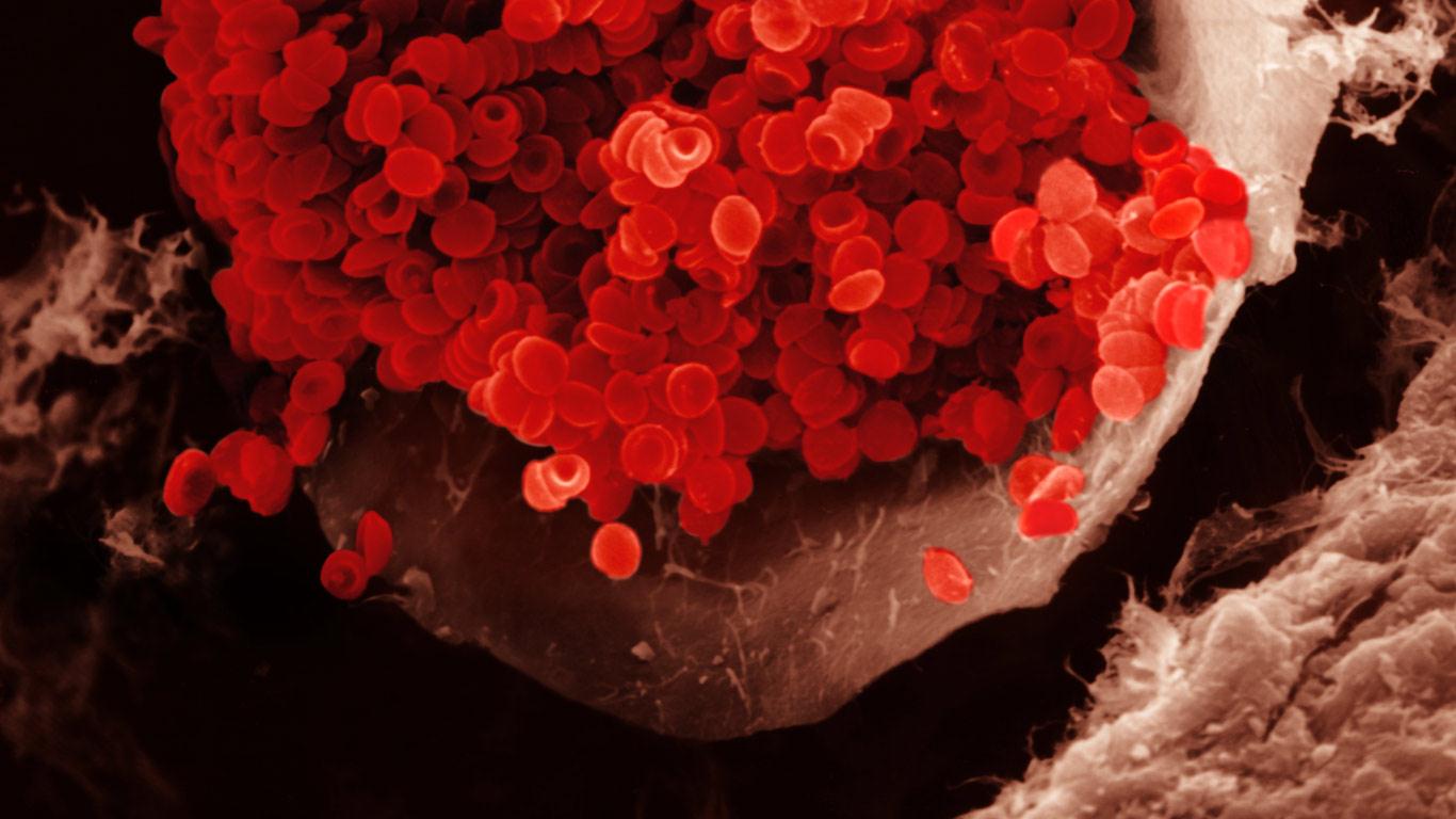 Rote Blutkörperchen in einem Blutgefäß. Erythrozyten haben eine bikonkave Form und stellen die grundlegende Form des Sauerstofftransports im Blut dar. REM X1000 (© Michael Webb/Visuals Unlimited, Inc.)(Bing Deutschland)