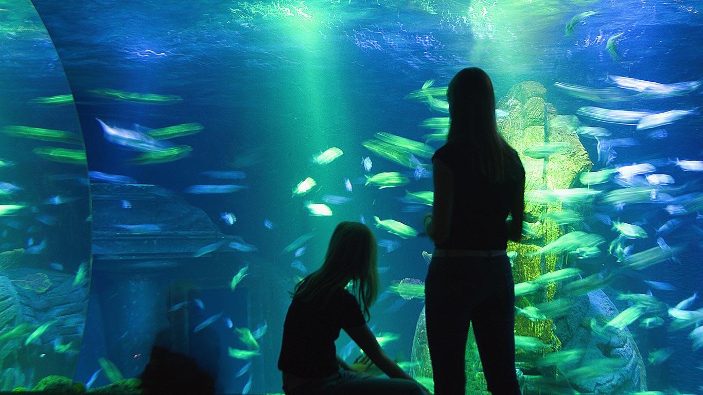 Silhouette von Menschen, die Fische im Aquarium betrachten, Sea Life München, München, Bayern, Deutschland (© Franco Cogoli/SIME/4Corners)(Bing Deutschland)