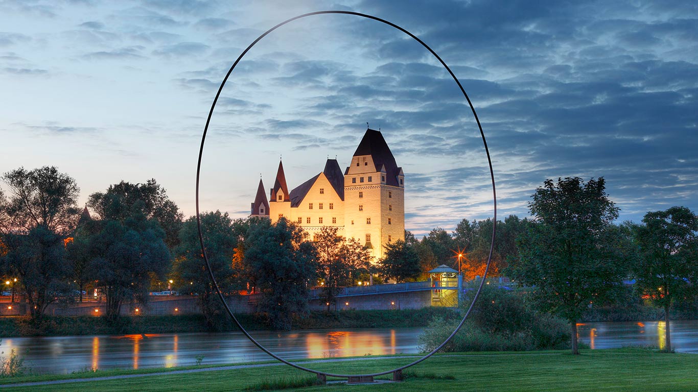 Skulptur „Das Auge“ von Paul Fuchs und das Neue Schloss, Ingolstadt, Bayern, Deutschland (© Martin Siepmann/imageBROKER/Aurora Photos)(Bing Deutschland)