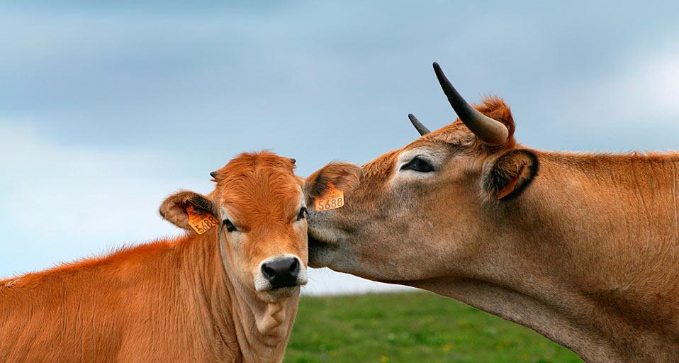 Vache aubrac avec son petit, Lozère, Languedoc-Roussillon (© les Corniere/Minden Pictures)(Bing France)