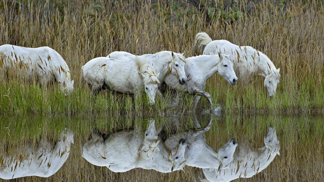 Chevaux marchant dans un marais en Camargue, France (© Danita Delimont/Getty Images)(Bing France)