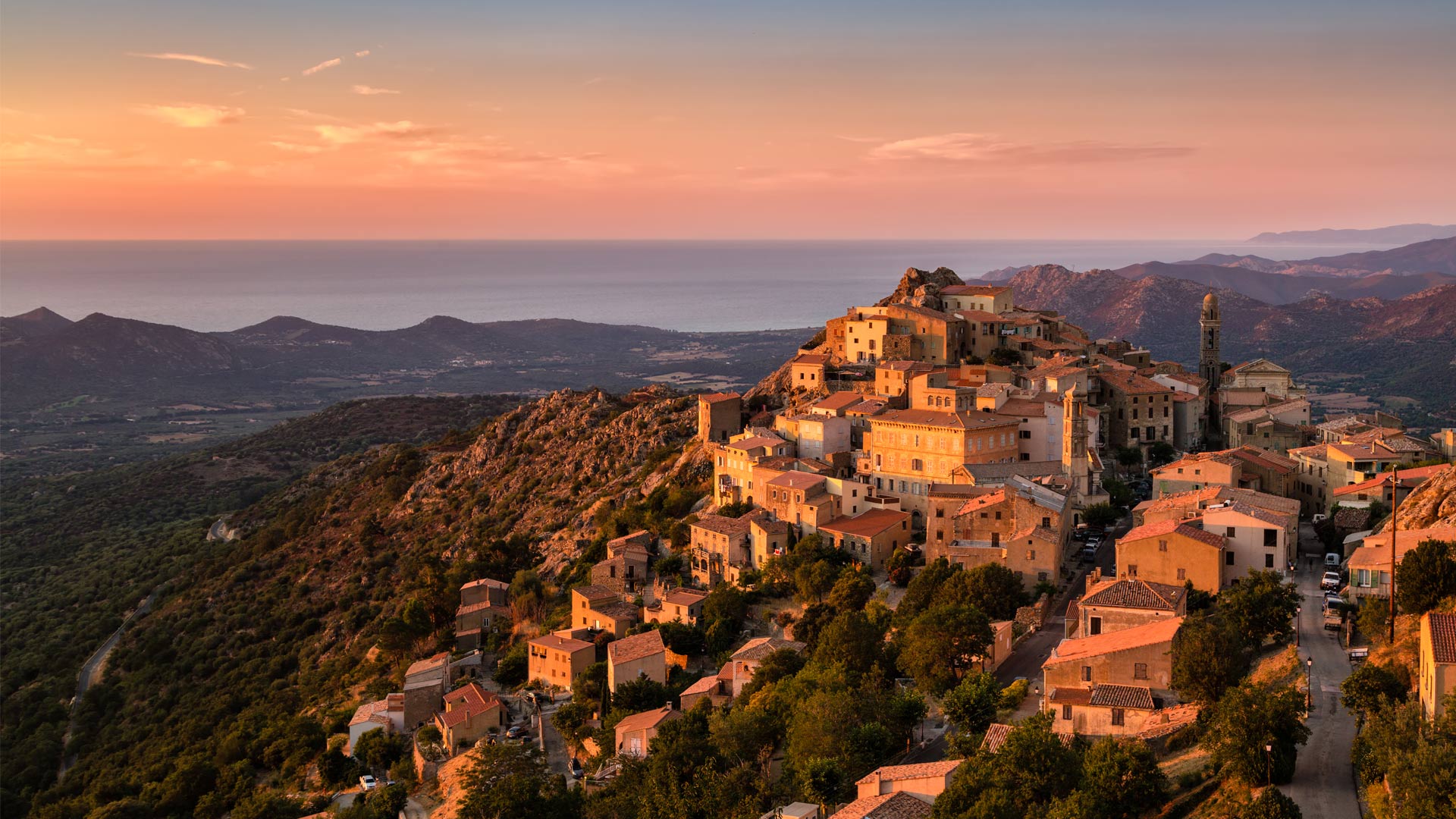 Soleil du soir sur le village perché de Speloncato en Corse (© joningall/iStock/Getty Images Plus)(Bing France)