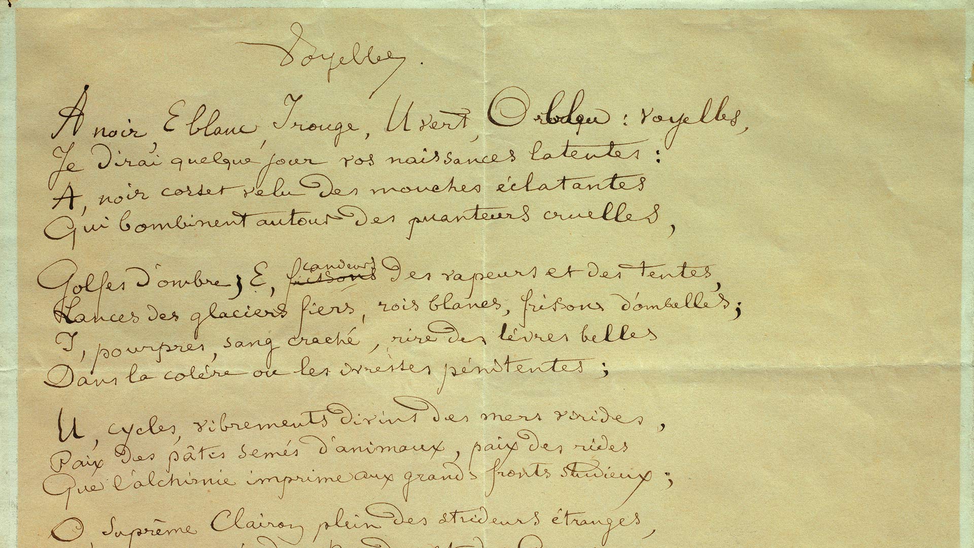 Manuscrit du poème « Les Voyelles » par Arthur Rimbaud (1854-1891), Musée Arthur Rimbaud, Charleville-Mezieres (© Photo by: Christophel Fine Art/Universal Images Group via Getty Images)(Bing France)