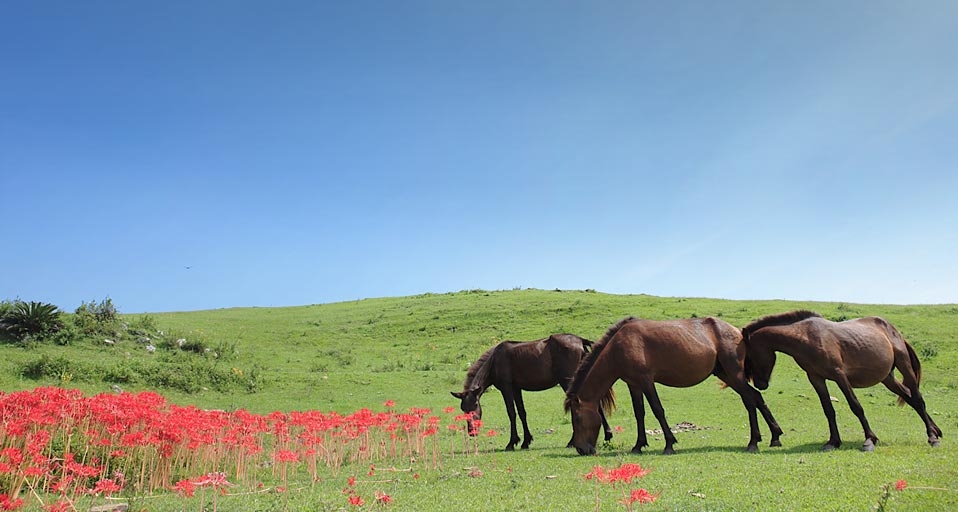 「御崎馬と彼岸花」宮崎, 都井岬 (© Hideki Yoshihara/Photolibrary) © (Bing Japan)