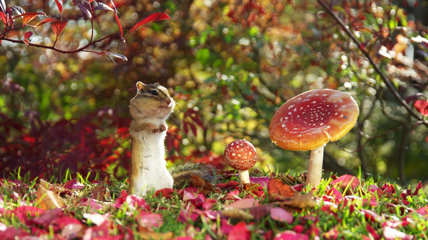 「キノコとエゾシマリス」北海道, 天塩郡 (© Datacraft\UIG/age fotostock)(Bing Japan)