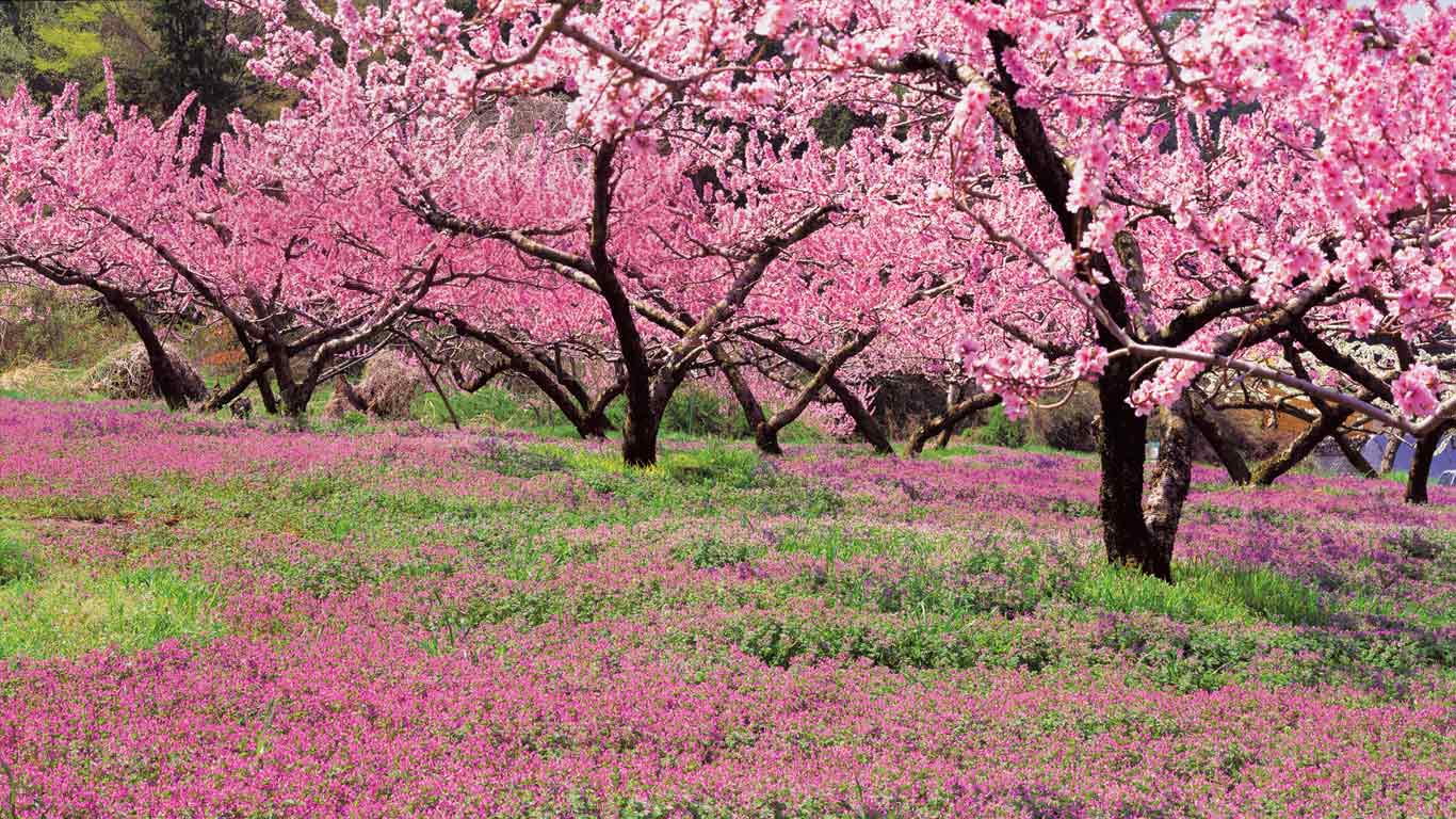 「桃畑」山梨, 笛吹市 (© JTB MEDIA CREATION, Inc./Alamy)(Bing Japan)