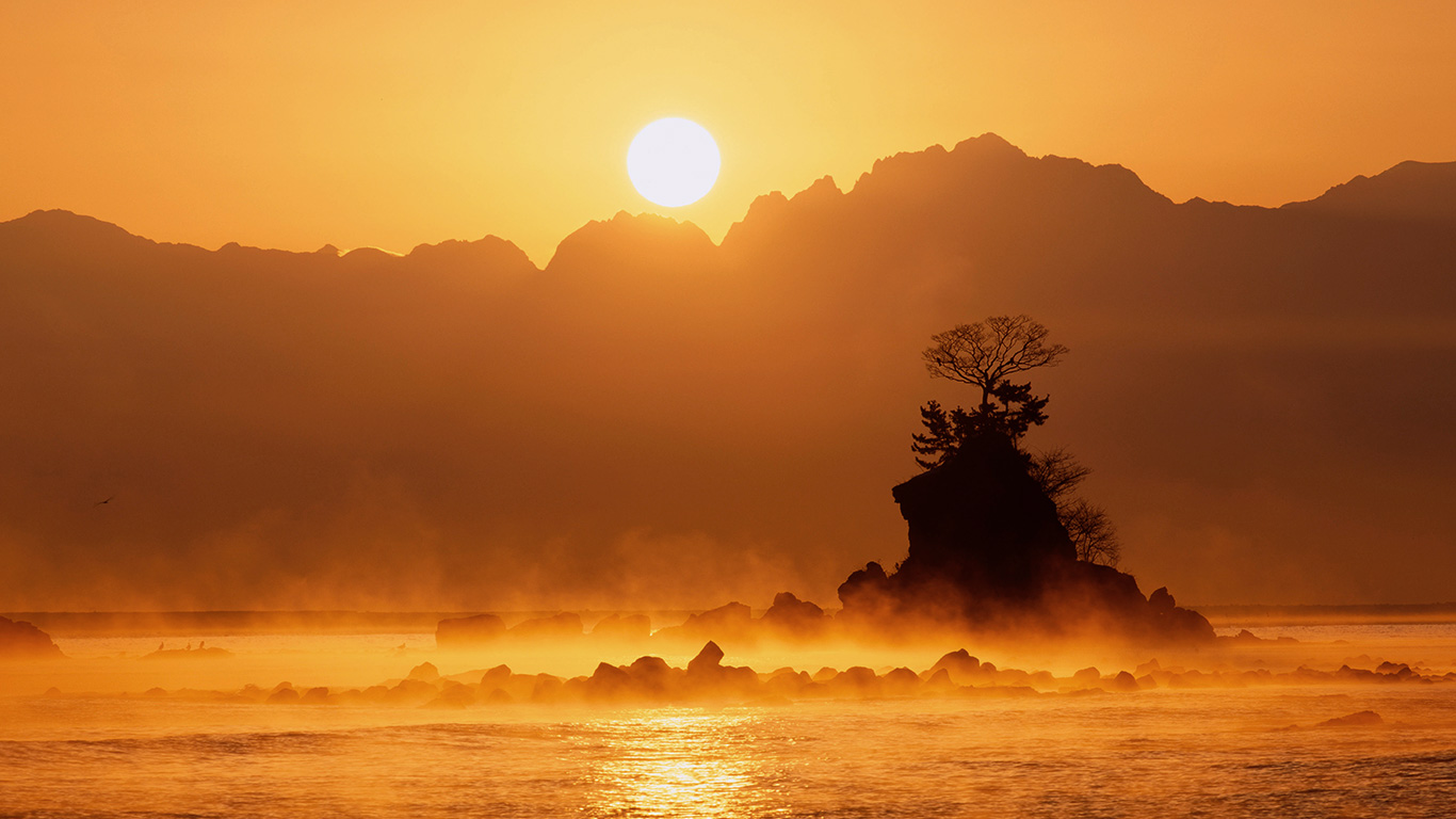 「雨晴海岸の日の出」富山, 高岡市 (© JTB MEDIA CREATION, Inc./Alamy Stock Photo)(Bing Japan)