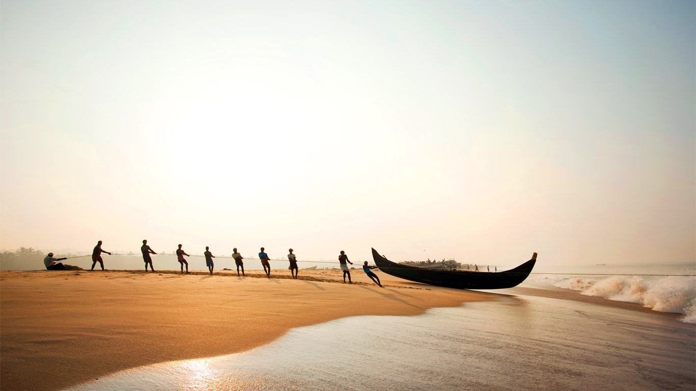 「プーバー・ビーチの漁師たち」インド, ケーララ州 (© Cultura RM Exclusive/Philip Lee Harvey/Getty Images)(Bing Japan)