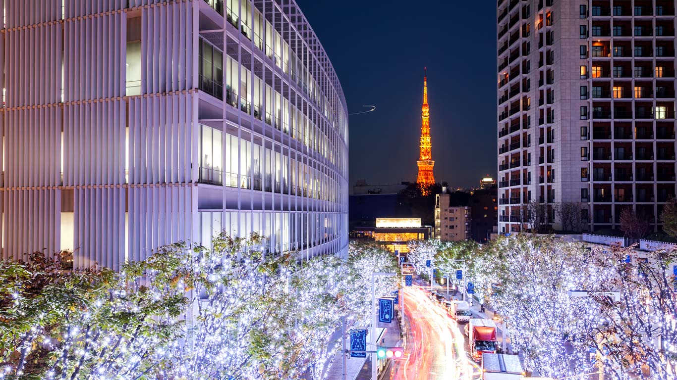 「けやき坂のイルミネーションと東京タワー」東京, 六本木 (© ZhangXun/Getty Images)(Bing Japan)