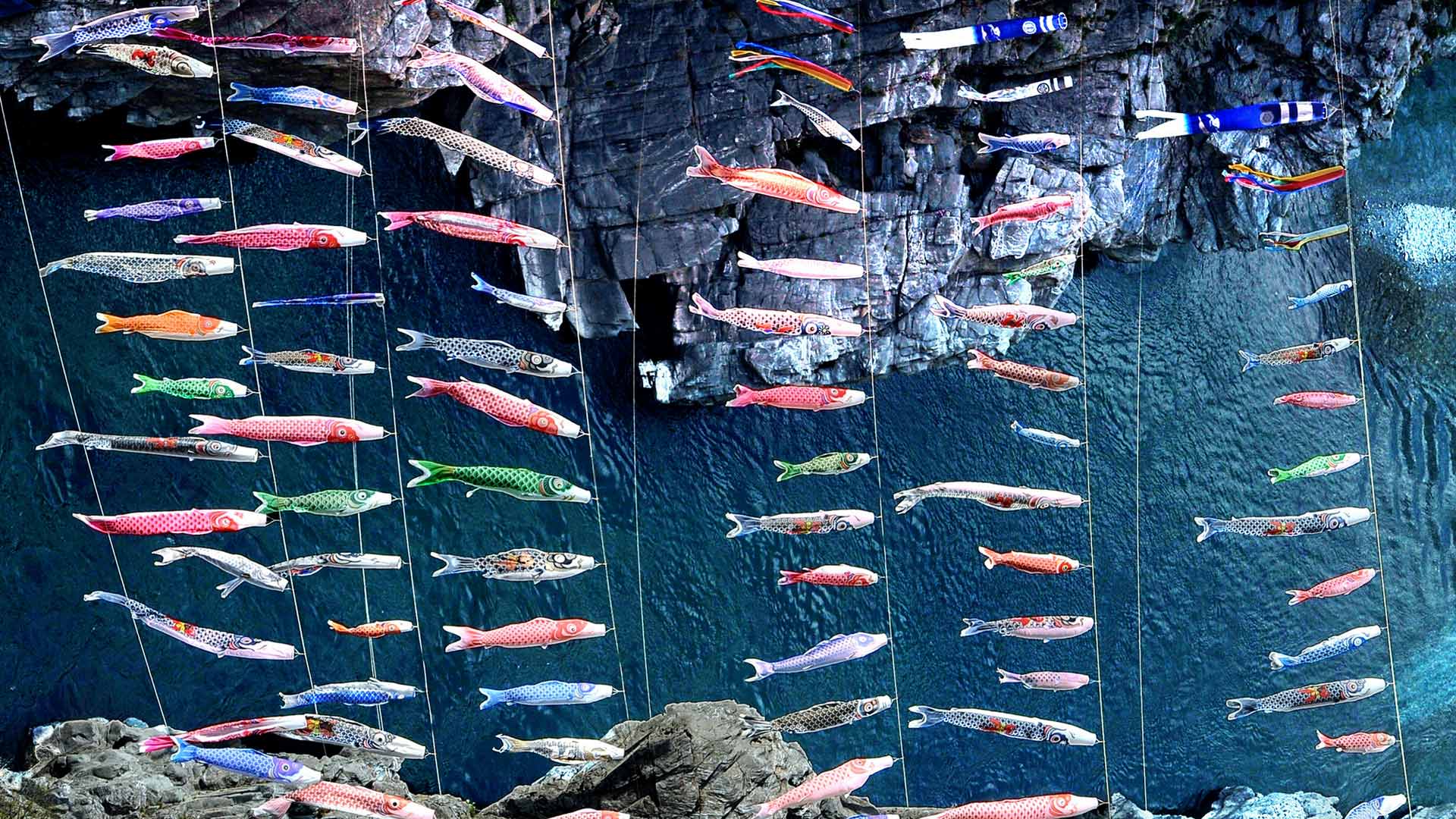 「大歩危峡のこいのぼり」徳島県, 三好市 (© Photo by The Asahi Shimbun via Getty Images)(Bing Japan)