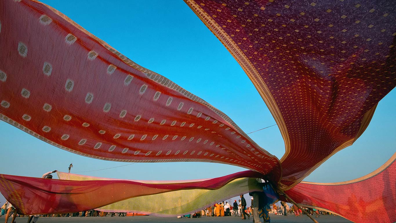 Drying saris on banks of the Ganga River, India (© Subir Basak/Moment/Getty Images)(Bing New Zealand)