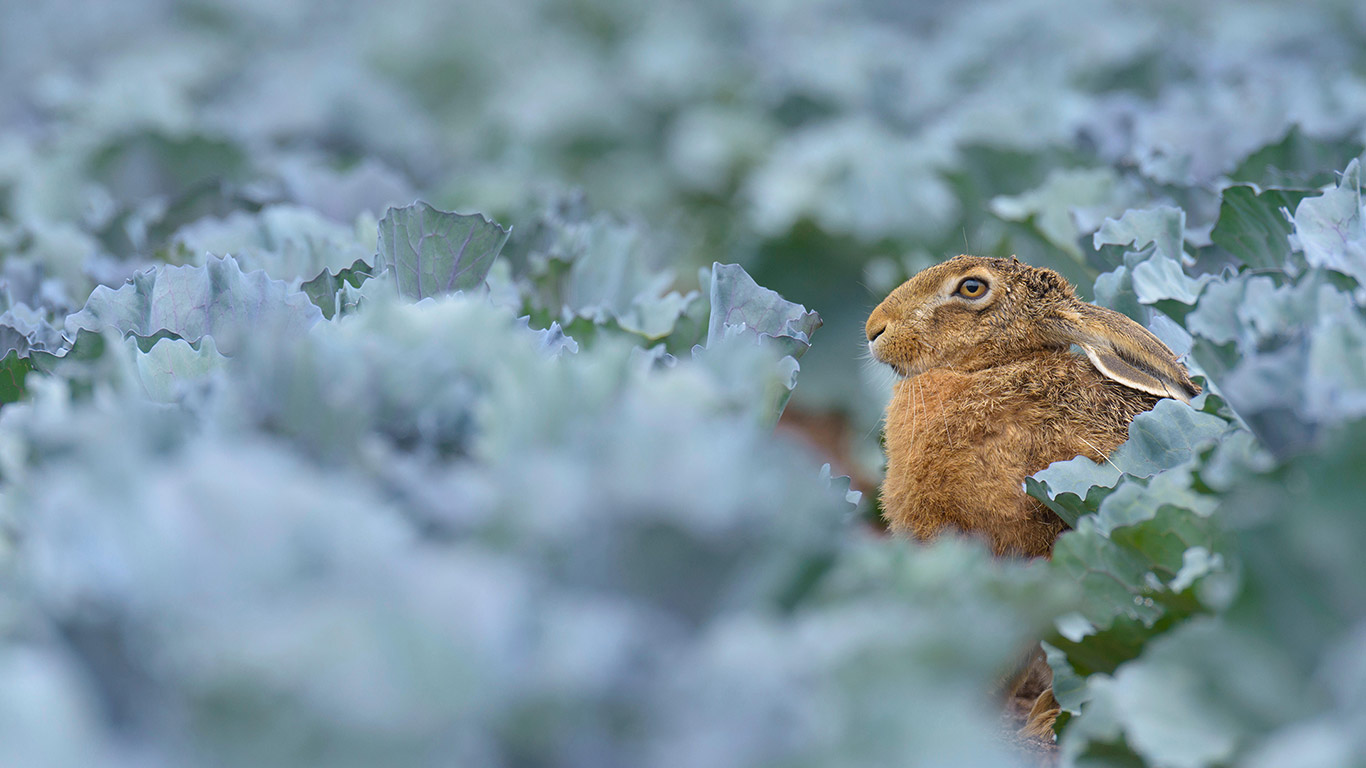 European brown hare (Lepus europaeus) in red cabbage field, Hessen, Germany (© Radius Images/Alamy Stock Photo)(Bing New Zealand)