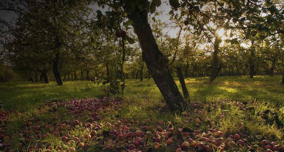 Ripe cider apples on the ground in Stewley Orchard, near Taunton, Somerset, England. © Neil Phillips/Cephas Picture Library/Photolibrary © (Bing United Kingdom)