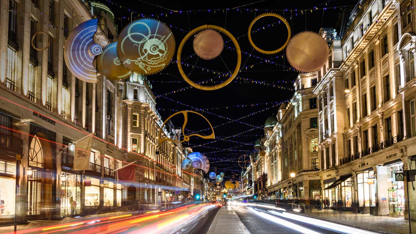 Christmas lights on Regent Street in London’s West End (© Taka Wu/Alamy)(Bing United Kingdom)