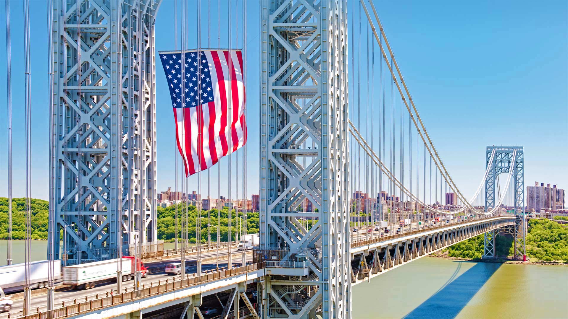 The George Washington Bridge displays the American flag in honor of Flag Day, June 14, 2016, Fort Lee, New Jersey (© Robert D. Barnes/Getty Images)(Bing United States)